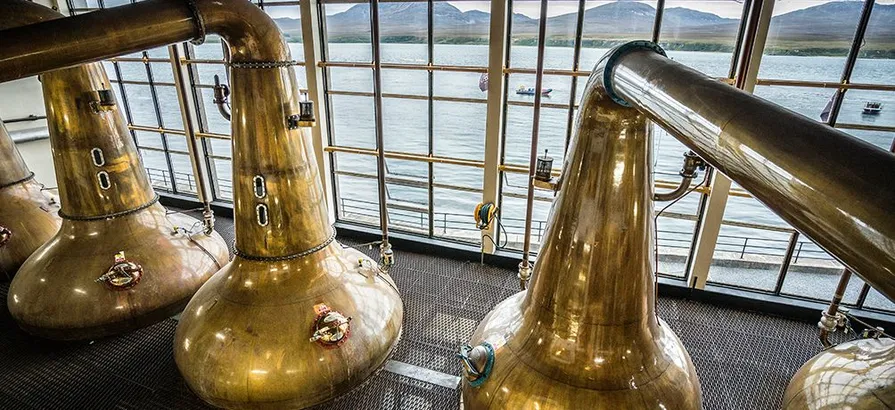 La sala de destilación se distingue por sus amplios ventanales que ofrecen una vista cautivadora del estrecho de Islay y de los Paps of Jura[2]. La destilación se realiza en alambiques que tienen la tradicional forma de cebolla calentados a vapor, con cuellos largos, los 3 alambiques de colada (wash still) tienen brazos de lyne descendentes y los 3 alambiques de espirituoso (spirit still) cuentan con brazos de lyne rectos. Con el propósito de promover el reflujo los alambiques son llenados solo a un tercio de su capacidad, esto da lugar a un destilado más ligero, mineral con claridad costera, pero sin perder densidad y untuosidad. La destilería también se caracteriza por sus puntos de corte más pequeños que los de Lagavulin. El condensador es de carcasa y tubo. La maduración se lleva cabo principalmente en barricas ex - bourbon en almacenes de estiba tradicional ubicados por fuera de Islay en la Escocia continental (Glasgow), a donde el líquido es transportado en camiones cisterna para su embotellado y añejamiento.