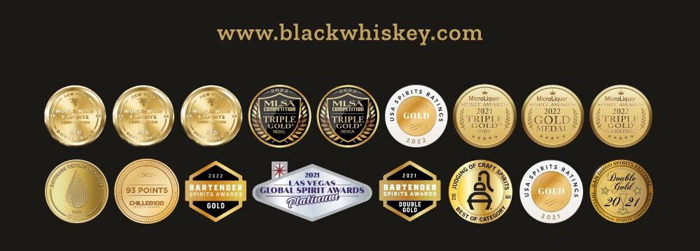 Algunos de los premios recibidos por Black Whiskey - drinksinc.ca
